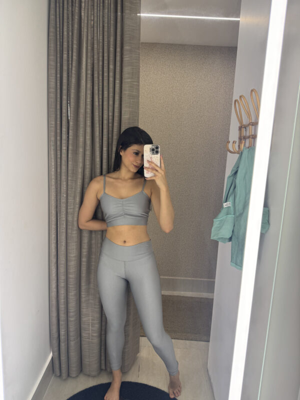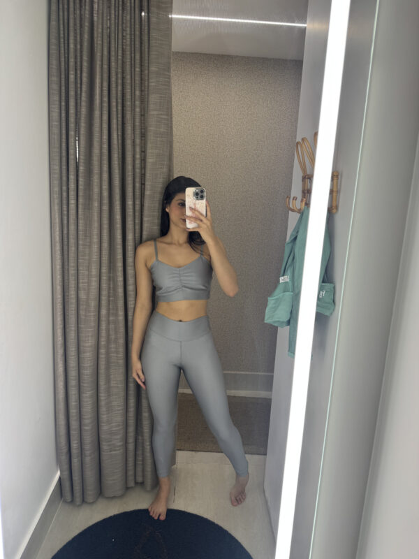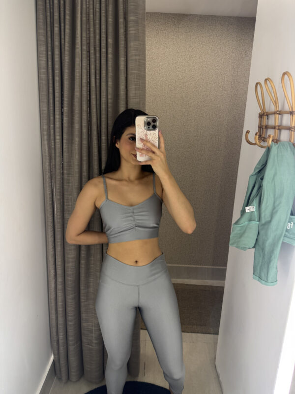 Conjunto prata com brilho leve e tecido tecnológico – conforto com toque de elegância.